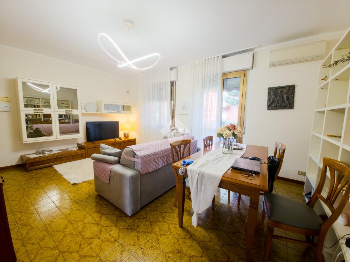 L'immobile offre spazi ben distribuiti, ideali per chi cerca comfort e funzionalità. La zona giorno si compone di un luminoso soggiorno e una cucina abitabile, perfetta per chi ama cucinare e condividere momenti conviviali. La zona notte include tre camere da letto, garantendo spazio e privacy per tutta la famiglia. Sono presenti due balconi e doppi servizi, di cui uno ristrutturato nel 2021. L'appartamento è dotato di aria condizionata e infissi in triplo vetro alluminio, assicurando un ambiente confortevole in ogni stagione.