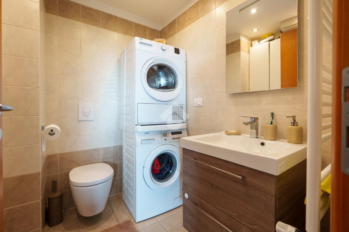 L'appartamento è dotato di un impianto di riscaldamento e raffrescamento a pavimento e di un sistema di allarme, assicurando sicurezza e comfort termico.